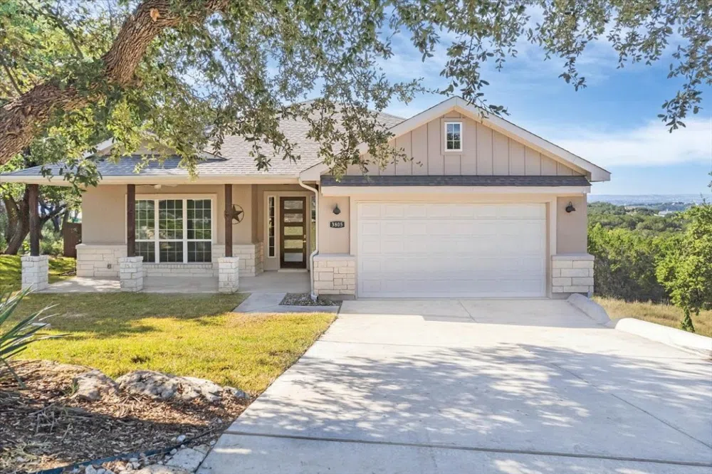 Welcome to this incredibly unique 4 bed/3.5 bath home with panoramic VIEWS of Lake Travis and the picturesque hill country! Photos can't possibly convey just how beautiful, modern, and immaculate this home is! You must see it in person and experience it for yourself! Featuring large windows that have been thoughtfully placed throughout, the interior is filled with an abundance of natural light. As you step inside, you're greeted by high wood-beamed ceilings, a fireplace perfect for cozy evenings, and an open floor plan that creates an ideal space for entertaining. The wood-look tile floors, silestone countertops, and modern fixtures polish it all off! One of the highlights of this home is the fantastic deck overlooking the hill country and Lake Travis. Here, you can savor the scenery and breathtaking sunsets while enjoying meals al-fresco style, with the added touch of private french doors leading to the primary bedroom. Tucked away from the other bedrooms, the primary retreat offers versatility and convenience for multi-generational living or guests. Its pristine bathroom features dual vanities and a standalone tub separate from the seamless glass shower. Three secondary bedrooms provide ample space for family and guests, and one of them features its own private bathroom! With a mudroom located just inside from the garage for you to drop your things as you come home, a separate laundry room with built-in shelving, and a half bathroom for convenience, this home checks all the boxes for comfort and functionality. If you love the outdoors, you'll appreciate the close proximity to Lake Travis, where you can indulge in various water activities and create memories to last a lifetime. Ownership includes access to gated parks and boat ramps on Lake Travis, private playgrounds and picnic areas, private campgrounds, community pools, two private fitness centers, golf, disc golf, and more! It truly feels like resort-style living here in Lago Vista, Texas!